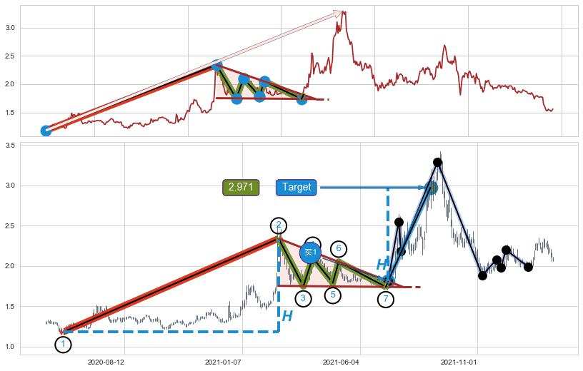 ➢ 最小中继整理涨幅→𝐇: 1.1600 (𝐇楔型旗杆的长度:楔型起点→顶点)