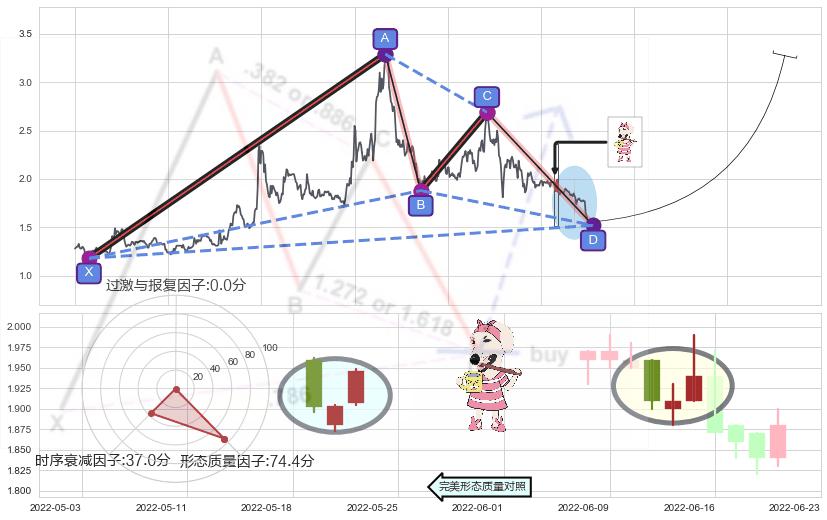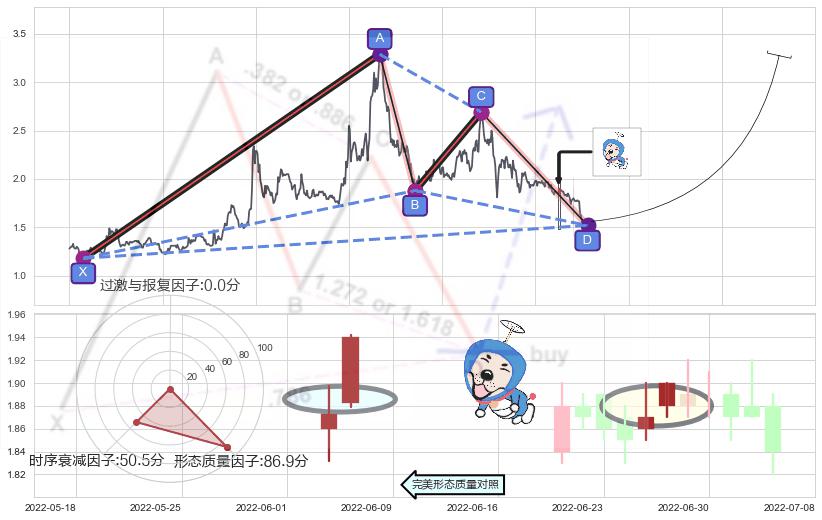 ➢ 上涨螺旋桨形态 🔜 谐波伽利d拐点上涨支撑 综合量化分数:52.08 【中性】