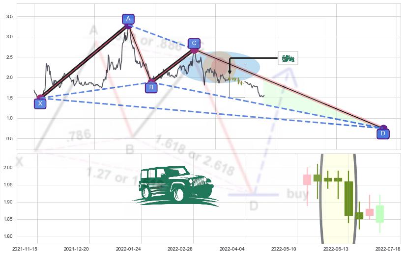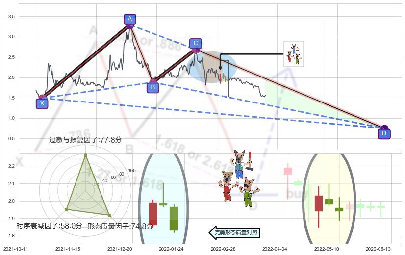 ➣ D点拟合预测价格0.7484,距离最后交易收盘价格1.5600相差 -52.03%