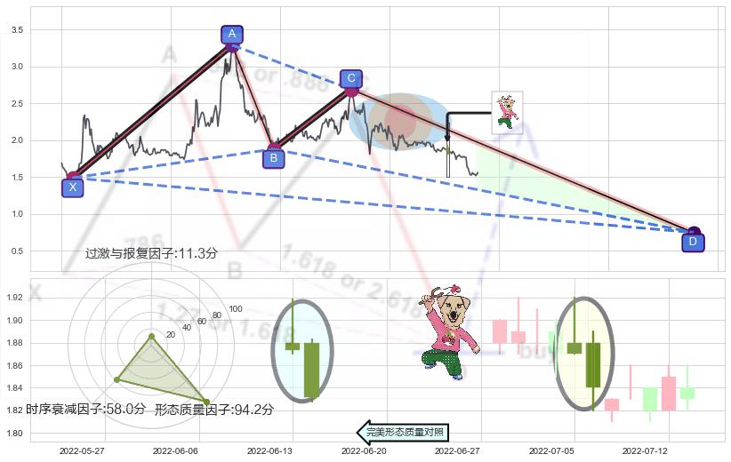 ➣ 未完成【蝴蝶】形态起点X: 2021-02-04, 已到达C点: 2022-02-18, 预测最终D点: 2023-05-16, 共567交易日