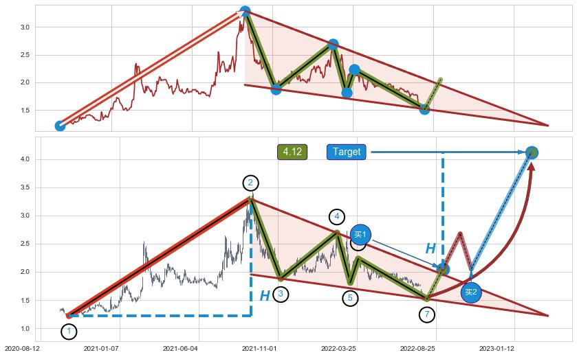 ➢ AI预测: 假定反转启动后, 第❷目标位置(2023-11-08, 2.319)