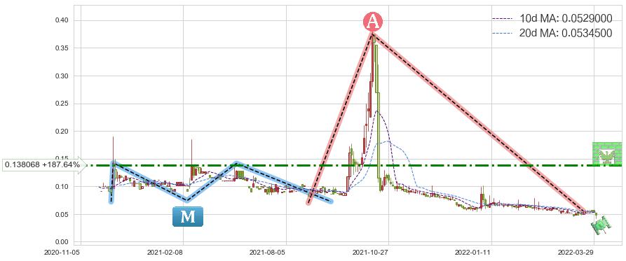 ♘ 阻力价格位0.138068,可信任强度55.58%,距离最后交易2022-03-31形成的收盘价格0.0480000相差 +187.64%