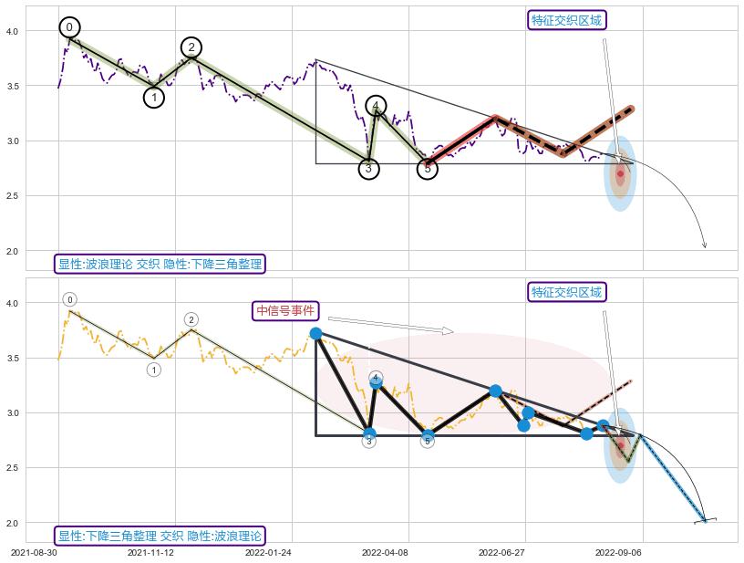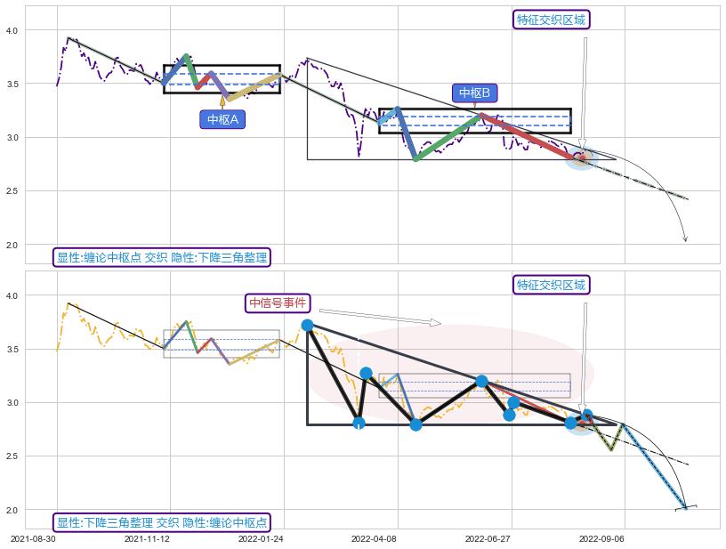 ➢ 下降三角整理属【中级别信号事件】缠论中枢点属【长级别信号事件】中长周期组合信号事件,中长事件长度比54.15%