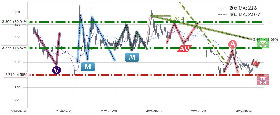 ➣ 【仅预测突破】最后价格:2.880与预测突破价格:3.270→【空间中等】后续最小【反转】第一目标价格→(2022-09-13: 3.750 )