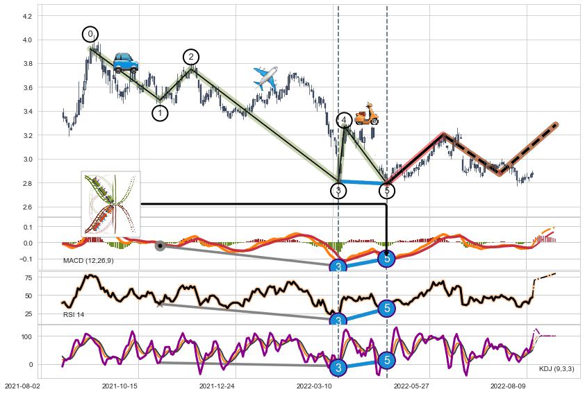 ➢ 图示②④⑥三个波谷均在 3.270 附近成功获得【支撑】→反弹上涨