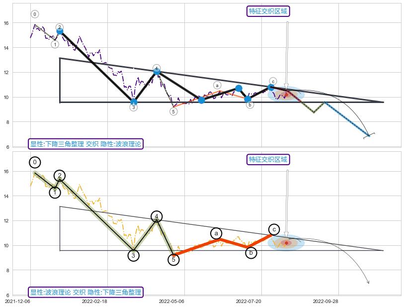 ➢ 下降三角整理与波浪理论信号事件周期长度级别相同,同周期信号事件