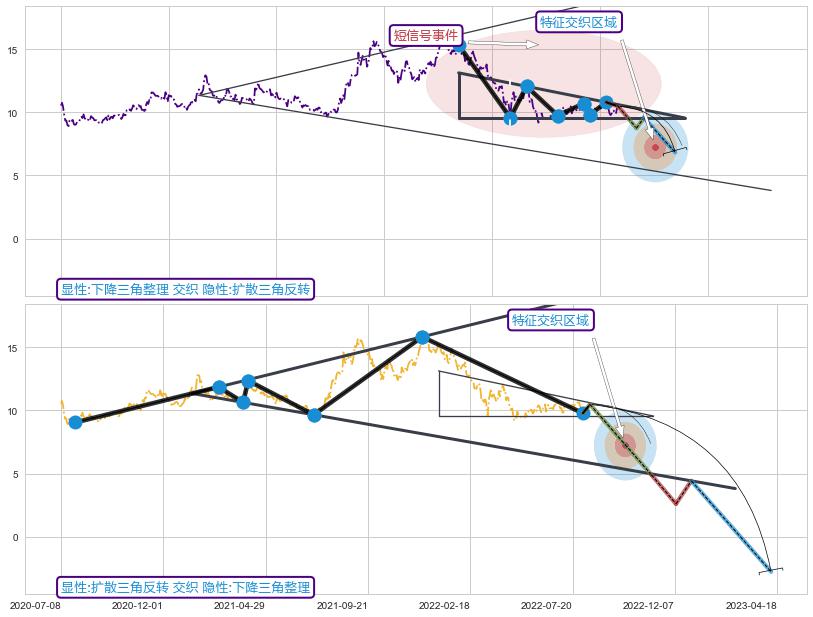 ➢ 下降三角整理属【短级别信号事件】扩散三角反转属【长级别信号事件】长短周期组合信号事件, 短长事件长度比29.56%