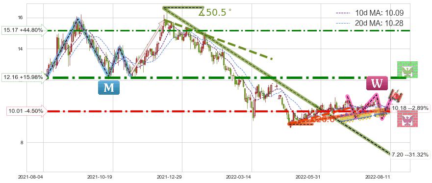 ♘ 支撑价格位10.01,可信任强度81.66%,距离最后交易2022-08-12形成的收盘价格10.48相差 -4.50%