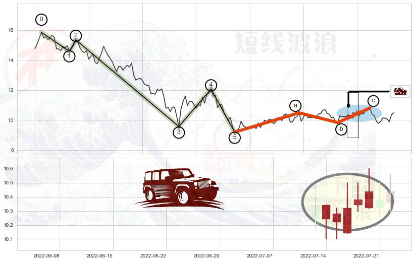 ➣ 波浪理论:猜想达到c点后小反弹终止反转下跌 → 下跌 → 【拐点】临近 → 阶段均值回复结束后继续大周期趋势跟踪