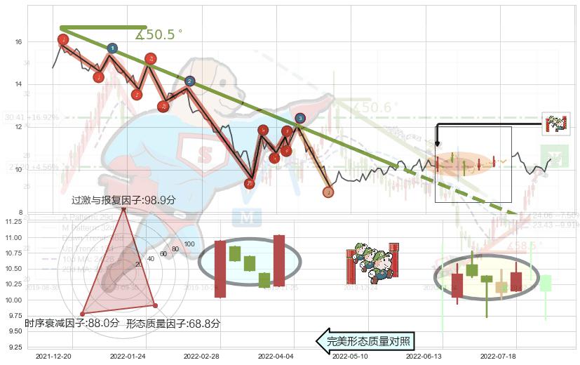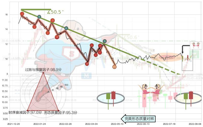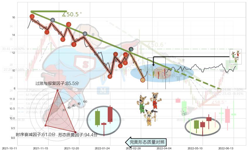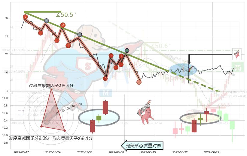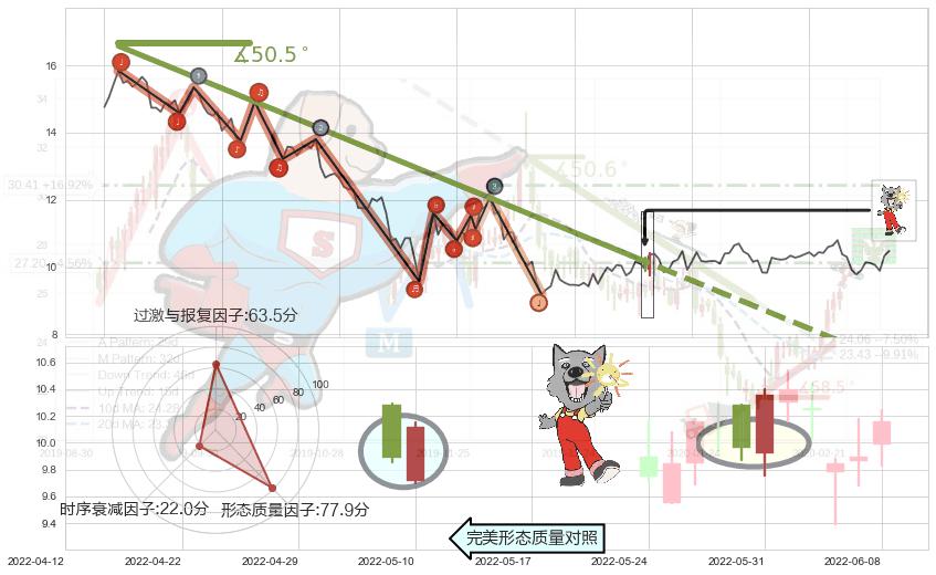 ➢ 2021-12-09-2022-05-25下跌趋势存在反转上涨[机会],其原下跌趋势的阻力位(7.20)已被突破[强支撑信号],原下跌趋势角度: 50.5˚