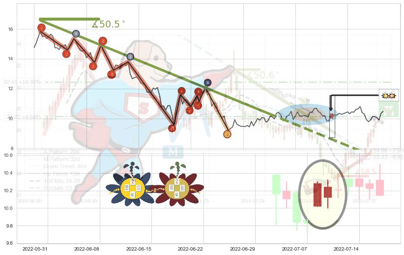 ♘ 阻力价格位15.17,可信任强度56.44%,距离最后交易2022-08-12形成的收盘价格10.48相差 +44.80%