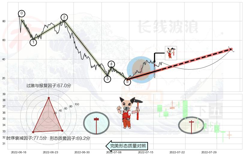 ➢ 看涨(低位)倒锤头线 🔜 波浪理论下跌浪:浪5反弹拐点 综合量化分数:53.24 【中性】