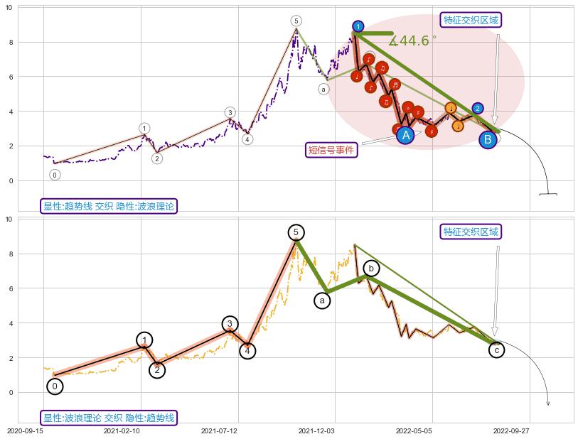 ➢ 趋势线属【短级别信号事件】波浪理论属【长级别信号事件】长短周期组合信号事件, 短长事件长度比32.67%