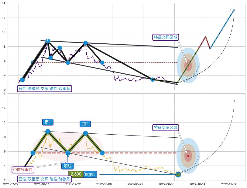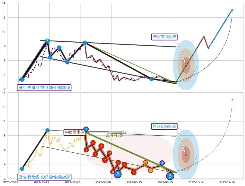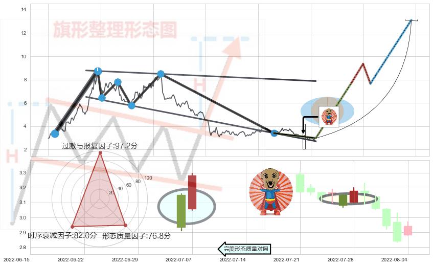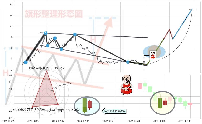 ➣ 【未确认突破,预测即将形成突破】降⚑旗形起点:2021-08-06, 预测突破点:2022-09-29,形态共284交易日