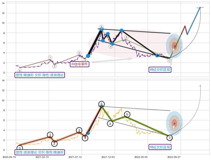➣ 波浪理论:猜想击穿破位c点后继续下跌 → 下跌 → 风险信号 → 小趋势跟踪
