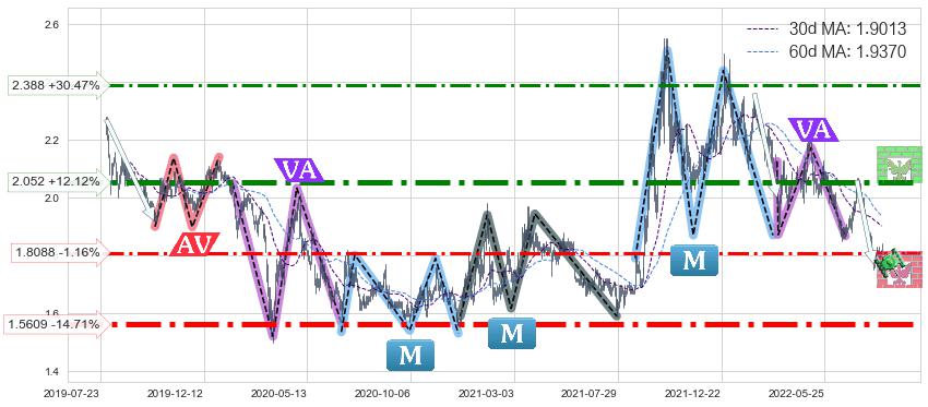 ♘ 阻力价格位2.052,可信任强度86.40%,距离最后交易2022-08-12形成的收盘价格1.8300相差 +12.12%