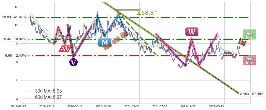 ➢ 【已确认突破】最后价格:7.63与最小【整理】第一目标价格→(2022-09-22: 11.97 )相较: 上涨空间【较大】