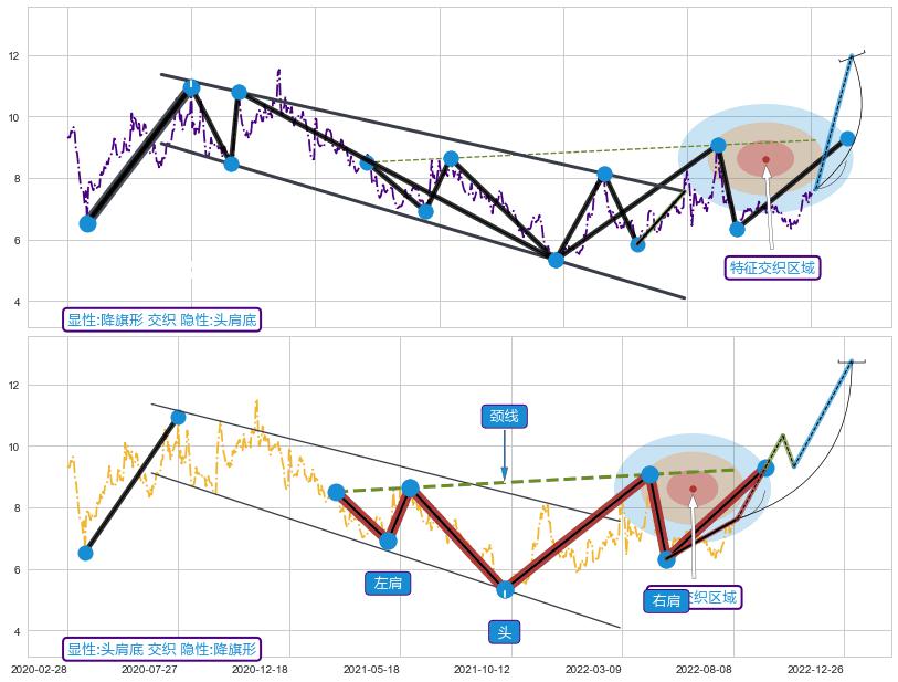 ➢ 头肩底:猜想临近关键阻力位突破点 → 临近拐点上涨 → 机会信号 → 大趋势均值回复