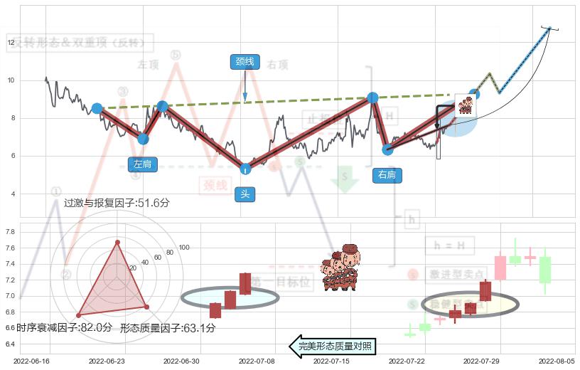 ♘ 阻力价格位10.83,可信任强度94.71%,距离最后交易2022-08-12形成的收盘价格7.63相差 +41.97%