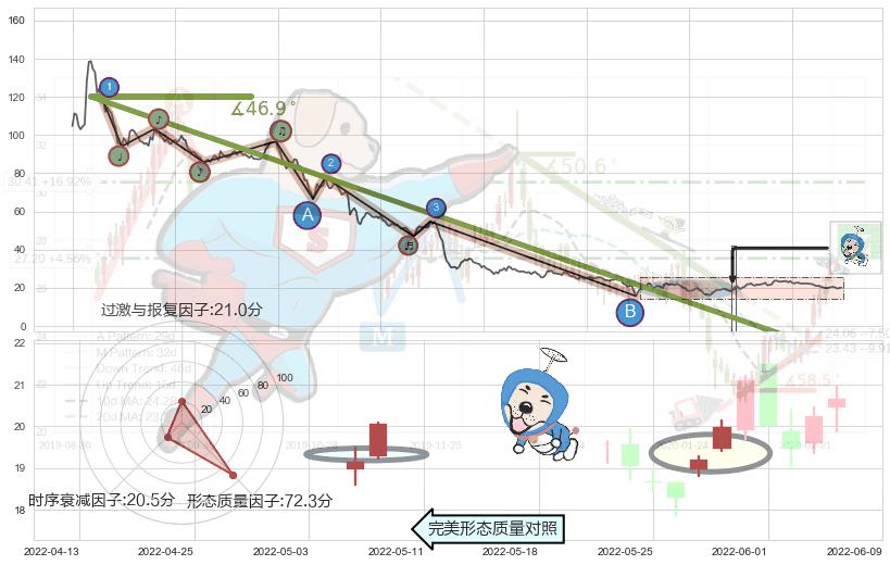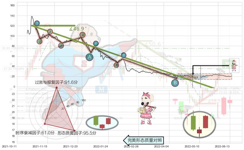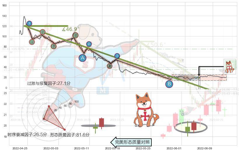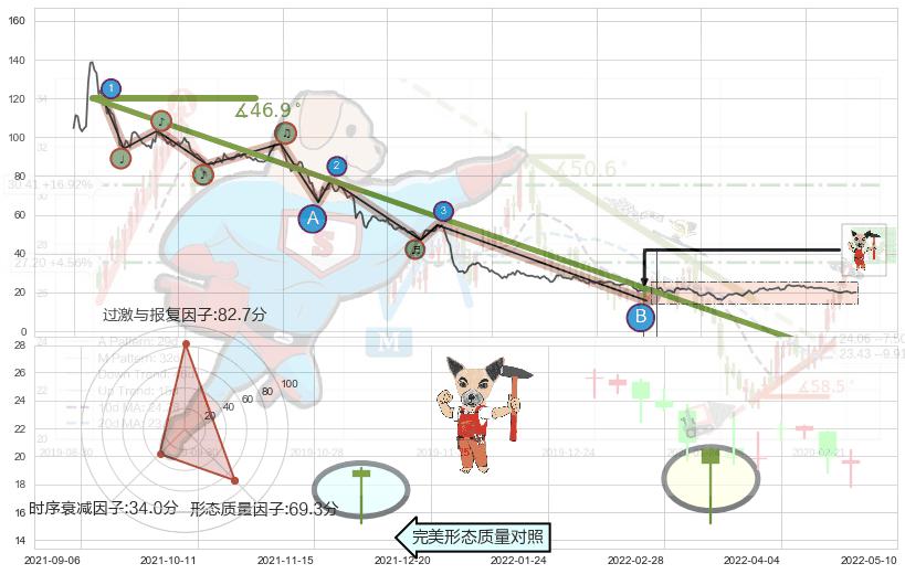 ➣ 2021-02-17-2022-05-11下跌趋势存在反转上涨[机会],其原下跌趋势的阻力位(-15.0629630)已被突破[强支撑信号],原下跌趋势角度: 46.9˚