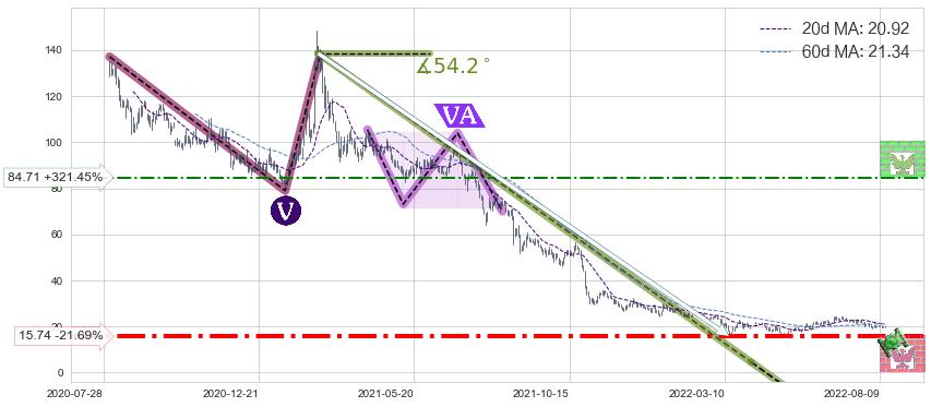 ♘ 支撑价格位15.74,可信任强度73.95%,距离最后交易2022-08-12形成的收盘价格20.10相差 -21.69%