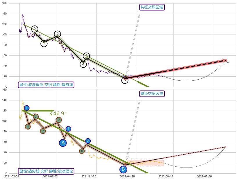 ➢ 2021-02-17-2022-05-11下跌趋势存在反转上涨[机会],其原下跌趋势的阻力位(-15.0629630)已被突破[强支撑信号],原下跌趋势角度: 46.9˚