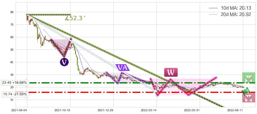 ♘ 阻力价格位23.45,可信任强度75.51%,距离最后交易2022-08-12形成的收盘价格20.10相差 +16.68%