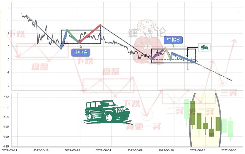 ➢ 缠论中枢点:猜想破位中枢B后持续下拉 → 下跌 → 破位中枢B支撑 → 持续趋势跟踪