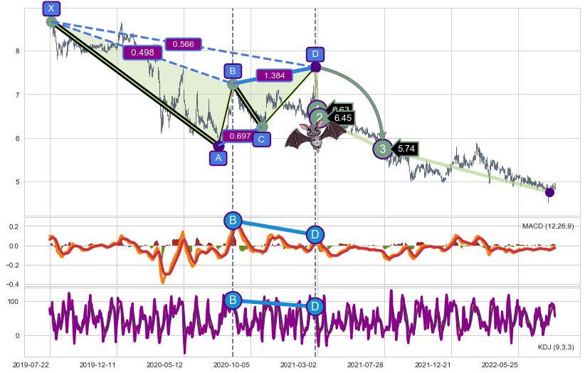 ➣ 已完成【蝙蝠】形态起点X: 2019-07-25, 终点D: 2021-02-25, 共395交易日