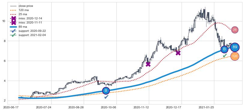 👍 尚未达到多条均线预测的最高波峰价格的平均值, 预期继续上涨