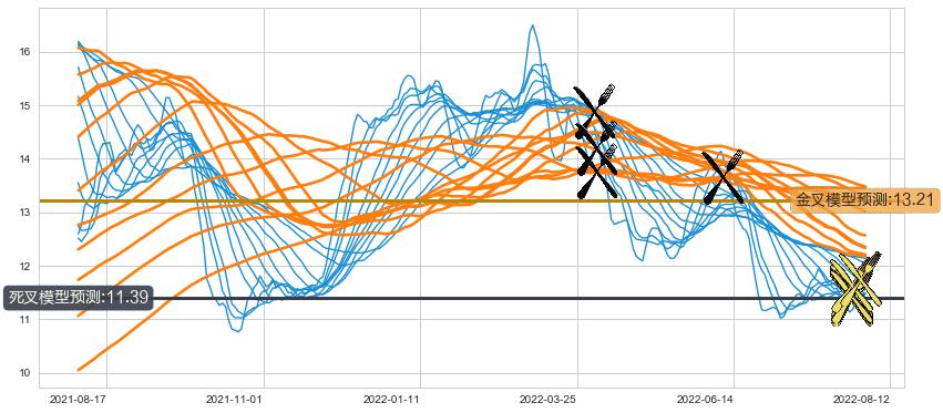 ➣ 60小时均线于(2022-04-01: 14.86)形成【死叉】基于【死叉历史模型】预测死叉后最低波谷价格: 12.81, 死叉后最低价格10.80,已经下跌超出预测最低波谷价格, 预期反弹