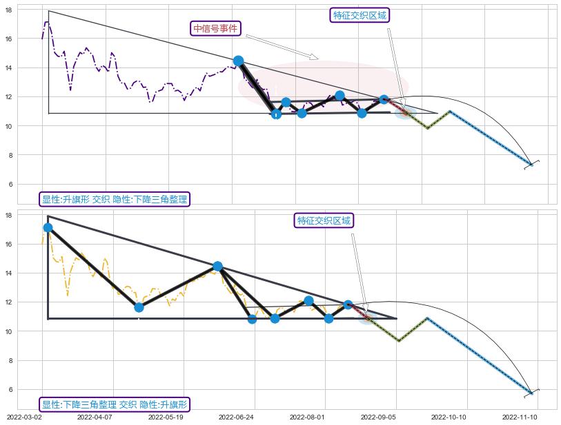 ➢ 【未确认突破,预测即将形成突破】下降三角形整理起点:2022-03-04, 预测突破点:2022-08-22,形态共114交易日