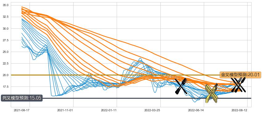 ➣ 34小时均线于(2022-08-11: 17.77)形成【死叉】基于【死叉历史模型】预测死叉后最低波谷价格: 14.92, 死叉后最低价格17.80,已经下跌超出预测最低波谷价格, 预期反弹