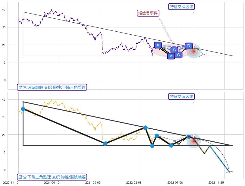 ➢ 谐波蝙蝠属【短级别信号事件】下降三角整理属【长级别信号事件】长短周期组合信号事件, 短长事件长度比18.31%
