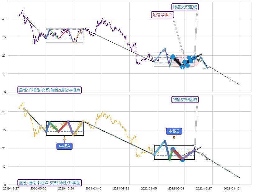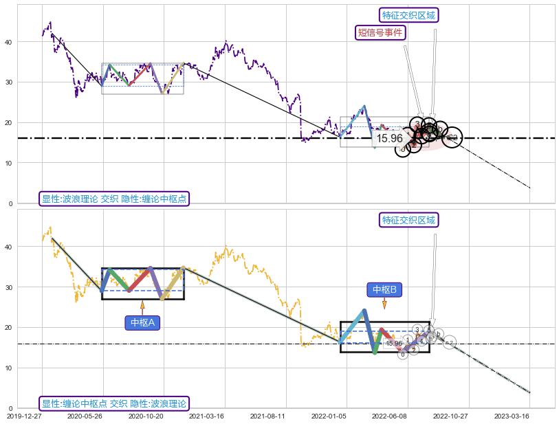 ➣ 缠论中枢点:猜想破位中枢B后持续下拉 → 下跌 → 破位中枢B支撑 → 持续趋势跟踪