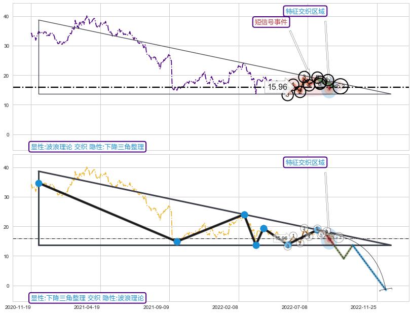 ➢ 波浪理论属【短级别信号事件】下降三角整理属【长级别信号事件】长短周期组合信号事件, 短长事件长度比13.25%