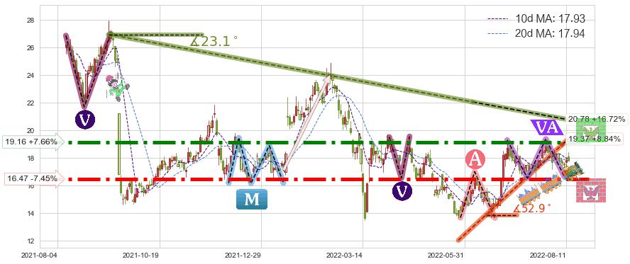 ♘ 阻力价格位19.16,可信任强度91.13%,距离最后交易2022-08-12形成的收盘价格17.80相差 +7.66%