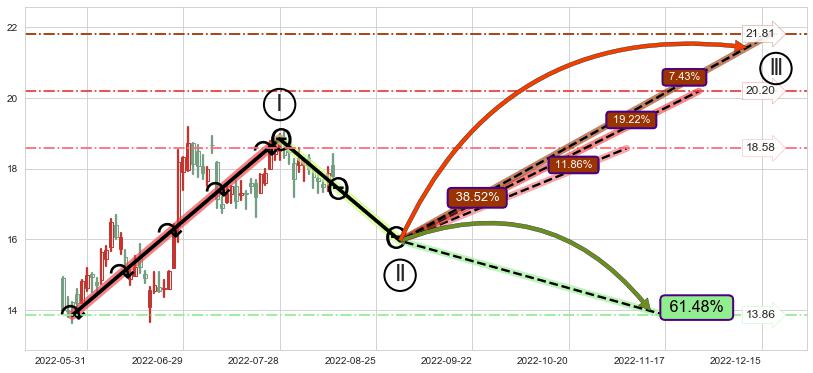 ➢ AI预测: 假定反转如期而至,第❶价格目标位置(2022-08-19, 16.94)