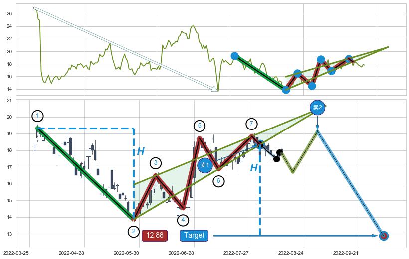 ➢ AI预测: 假定反转如期而至,第❸价格目标位置(2022-09-15, 13.86)