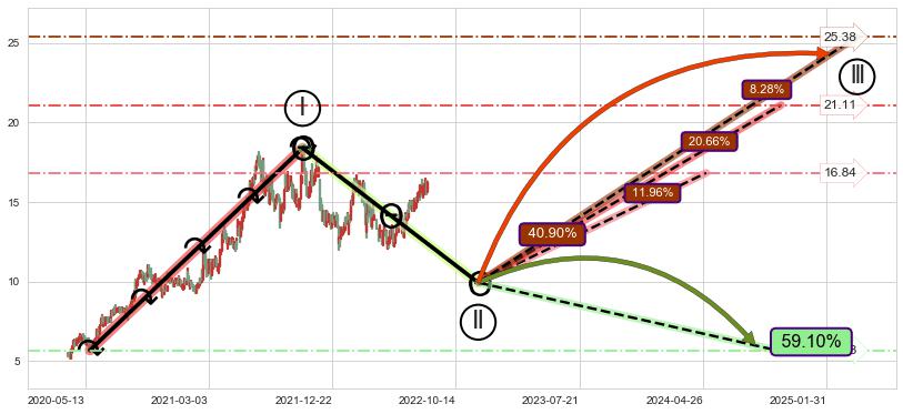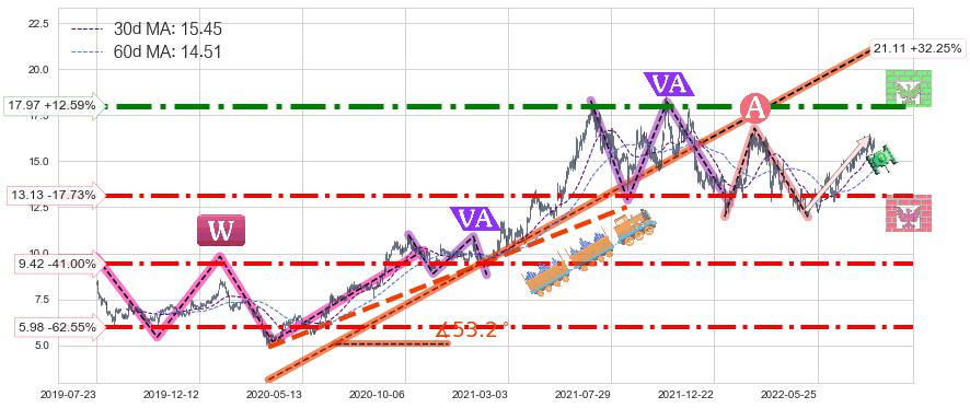 ♘ 支撑价格位9.42,可信任强度79.56%,距离最后交易2022-08-12形成的收盘价格15.96相差 -41.00%