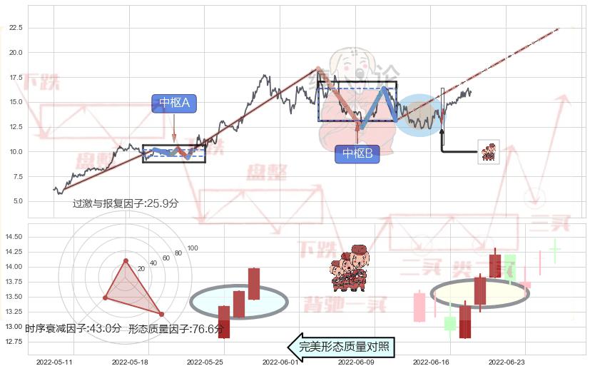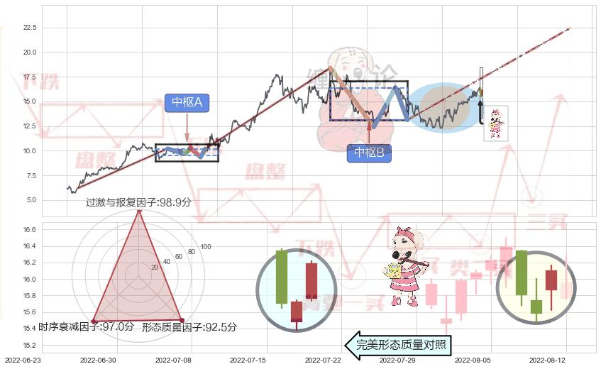 ➣ 上涨螺旋桨形态 + 缠论中枢点突破中枢B阻力拉升信号叠加后【目标达成率】中等,【看多】信号叠加【存续影响中等】