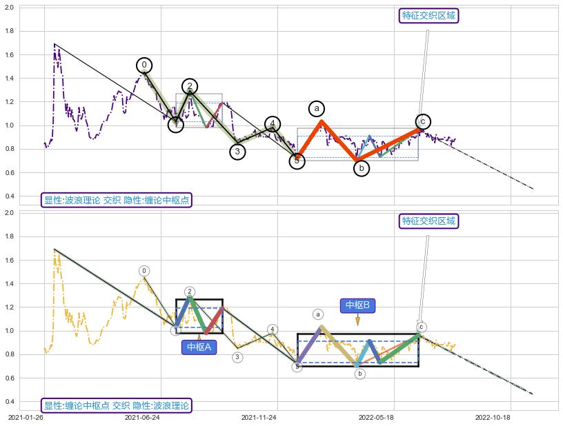 ➢ 波浪理论与缠论中枢点信号事件周期长度级别相同,同周期信号事件