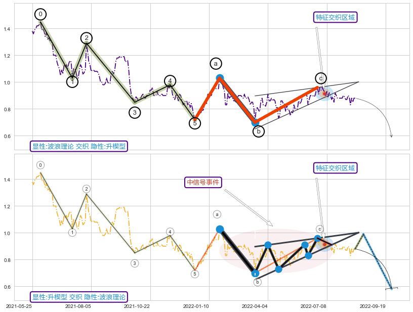 ➢ 波浪理论属【短级别信号事件】下降三角整理属【长级别信号事件】长短周期组合信号事件, 短长事件长度比34.81%