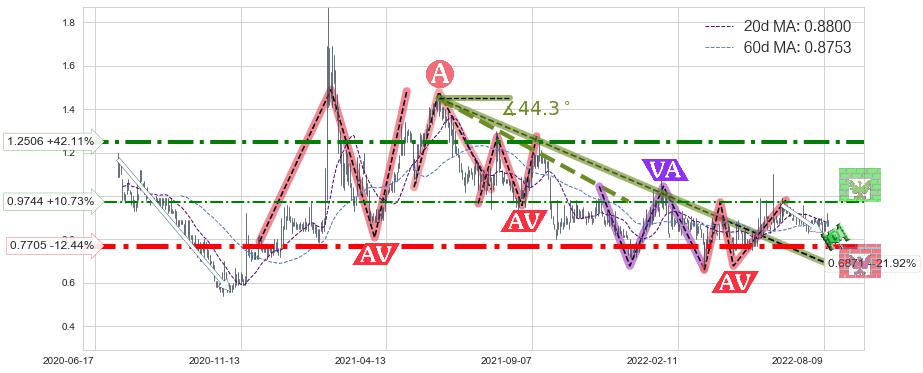 ♘ 阻力价格位0.9744,可信任强度53.39%,距离最后交易2022-08-12形成的收盘价格0.8800相差 +10.73%
