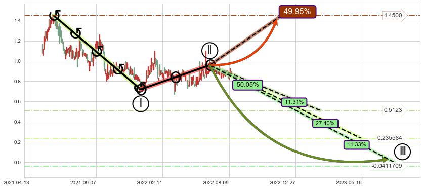 ➣ 循环浪继续向下【平均值】位置(2023-05-15, 0.235564),匹配聚类样本比例54.75%, 可能性概率27.40%