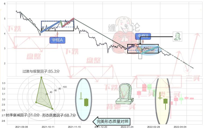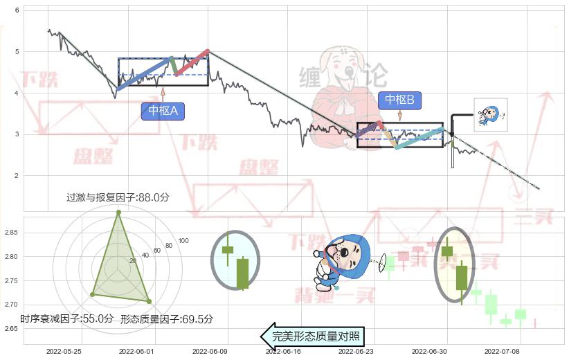➢ 下降三部曲(降势三鹤) 🔜 缠论中枢点破位中枢B支撑下拉 综合量化分数:48.23 【中性】