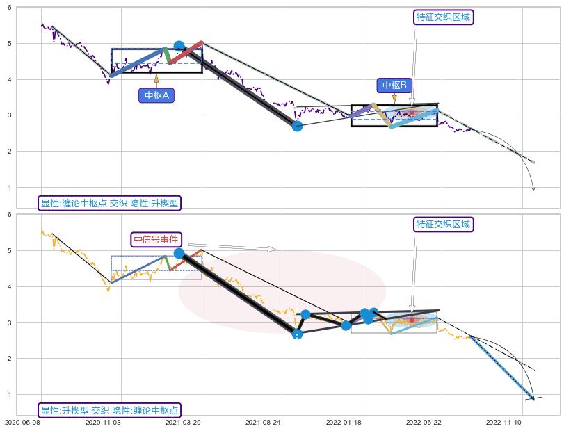 ➢ 【中枢B】:2021-12-30-2022-06-14,中枢由4笔构成,共108交易日, ZG=3.130, ZD=2.960