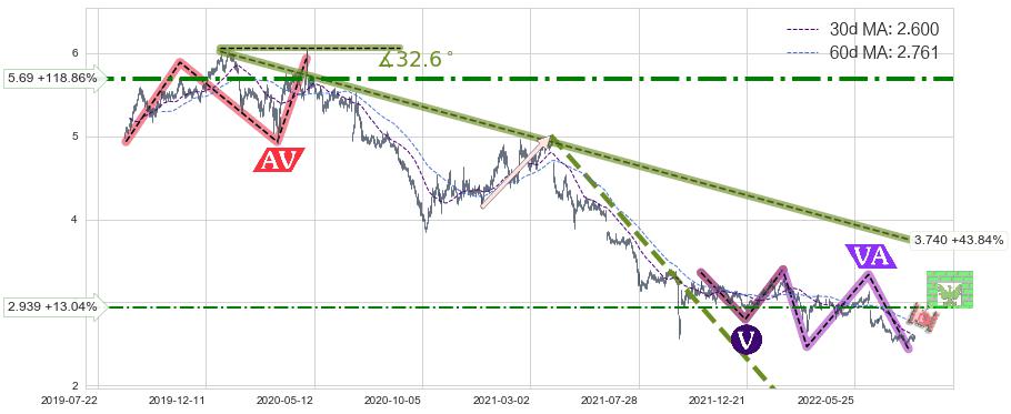 ♘ 阻力价格位2.939,可信任强度35.33%,距离最后交易2022-08-12形成的收盘价格2.600相差 +13.04%