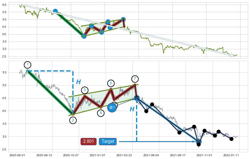 ➣ 最小中继整理跌幅→𝐇: 1.7000 (𝐇旗杆的长度:旗杆起点→顶点)