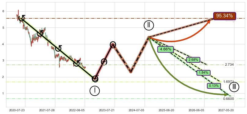 ➢ 循环浪继续向下【最低】位置(2027-05-20, 0.6600),匹配聚类样本比例2.81%, 可能性概率0.13%